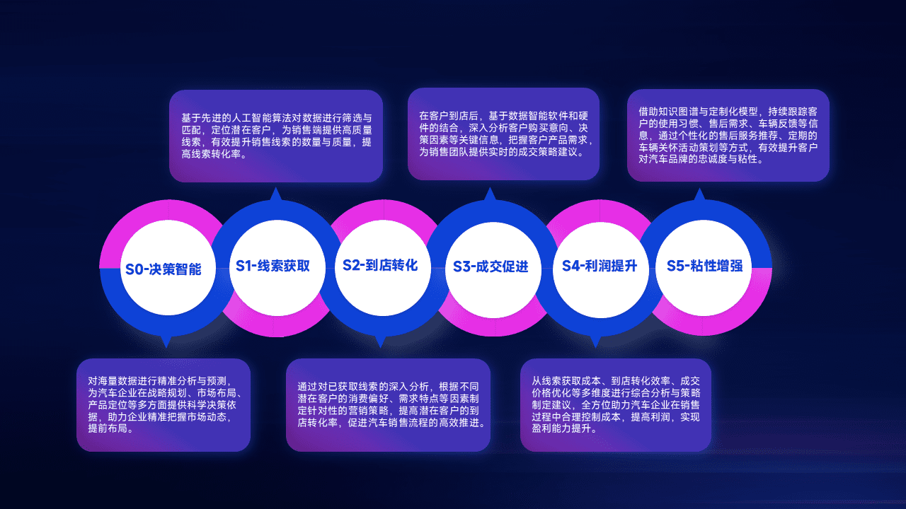 通过拓宽潜在客户来源、、、、优化线索分配并提高到店转化率,,,,以增强销售效率。。同时,,,利用线索数据不断优化分析模型,,,,有效提升转化率,,扩大营销影响力。。。。